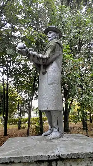 ![]() Пам'ятник І. В. Мічуріну, нещодавно зруйнований негодою | |
