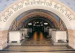 На порталі крипти розташований напис латинською мовою «Credo, quod Redemptor meus vivit» («Вірую, що мій Спаситель живий»).