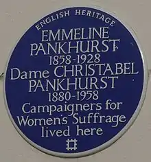 У 2006 році Синя меморіальна дошка, присвячена Сильвії і Кристабель Панкгерст, була встановлена «Англійською спадщиною» за адресою 50 Clarendon Road, Notting Hill, London W11 3AD, Royal Borough of Kensington and Chelsea, де вони жили[14].