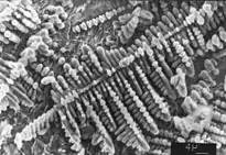 Напрямок росту осей збігається з напрямком осі піраміди, яку утворюють площини найгустішого упакування атомів. Тому в кристалах з кубічною чи тетрагональною ґраткою осі кристалітів перпендикулярні між собою, а з гексагональною — розміщені під кутом 60°. Урешті, коли температури осей кристала і розплаву між ними вирівнюються, розпочинається повільніша кристалізація в міжосьовому просторі. Так із зародків виростають деревоподібні кристаліти — дендрити (з грец. δένδρον — дерево). Механізм такого росту називають дендритним.