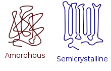 Кристалізація полімерів є процес, пов'язаний з частковим вирівнюванням їх молекулярних ланцюжків. Ці ланцюги складаються разом і утворюють впорядковані області, звані ламелі, які складають більші сфероїдальні структури — сфероліти. [1] Полімери можуть кристалізуватися при охолодженні з розплаву, механічному розтягненні або випаровуванні розчинника. Кристалізація впливає на оптичні, механічні, термічні і хімічні властивості полімеру. Ступінь кристалічності оцінюється різними аналітичними методами, і зазвичай знаходиться в діапазоні від 10 до 80 %, таким чином, кристалізовані полімери часто називаються «напівкристалічні». Властивості напівкристалічних полімерів визначаються не тільки ступенем кристалічності, а й залежать від розміру і орієнтації молекулярних ланцюгів.