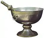 Вода, освячена в церкві під час обряду водохреще. Свята вода, згідо з вченням церкви, має властивість зцілення хворих[15]. Наприклад, Серафим Вирицький хворим людям, що проходили до нього радив приймати по столовій ложці освяченої води щогодини[16]. Свята вода, згідно з церковними авторами починаючи з IV століття, має властивість зберігати свіжість протягом тривалого часу.