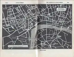 Після роману „Важкі часи“ з його гнітючою атмосферою і схематичністю „Крихітка Дорріт“ була поверненням до насичених життям творів широкого масштабу. У „Крихітці Дорріт“ Дікенс повертається з вигаданого міста Кокстаун в реальний Лондон, опис якого, правда, явно змінився з часів перших міських нарисів Дікенса. В описах його вулиць, мостів, магазинів немає колишньої сентиментальної м'якості і затишку, властивого Лондону ранніх творів письменника. У цьому Лондоні багато що залишилося від неживого, страшного Кокстауна, і минула мальовничість поступилася місцем одноманітності. Якщо порівняти його опис в „Крихітці Дорріт“ і „Ніколасі Нікльбі“, то, перш за все, звертає на себе увагу однотонність, емоційна однокольоровість словесного матеріалу: якщо там розкіш поруч з убогістю, то тут переважають слова: похмурий, потворний, меланхолійний. Якщо в першому уривку автор займає позицію стороннього спостерігача, який любується, не без жаху, грандіозним і мальовничим видовищем, яке йому відкрилося, то тут ніякого милування немає, а є виразно соціальний протест, що звучить.