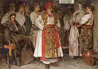 Цього ж року створив конкурсну картину «Наречена», яка мала великий успіх, що дало художникові право на закордонне відрядження за рахунок Академії до Західної Європи. Під час річного перебування в Європі (Франції, Італії, Австрії, Німеччині) навчався у Відні в Ґустава Клімта, вплив якого помітний як в філософії, так і в технічній манері Федора Кричевського (порівн. триптих Кричевського «Сім'я» з картинами Густава Климта «Життя та Смерть», «Три віки жінки», «Поцілунок» та інші). Творчим звітом про відрядження стала картина «Весільний обряд в Україні» («Молодиці»). Російська критика відзначила, що він «виявил слабость любить все родное». Через таку «предерзость» Федорові Кричевському було «відмовлено у пенсіонерському утриманні»[2].