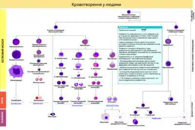 - Комітована клітина-попередник лімфоїдного ряду дає початок Т і В лімфоцитам, а також NK-клітинам (англ. natural killer cell) та деяким дендритним клітинам;