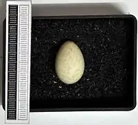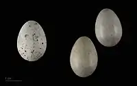 У кладці найчастіше 5 яєць, інколи 6, рідше 4 або навіть 2. У день відкладається по яйцю. Основний фон забарвлення шкаралупи світло-зеленувато-сірий або сірувато-білий. Але проглядається він погано, оскільки на яйцях, крім світлих оливково-вохристих поверхневих плям і крапок, добре виражені великі світло-сірі глибокі плями, які у вигляді вуалі вкривають майже всю поверхню шкаралупи. Середні розміри яєць Європі: 20,95×15,32 мм.[5]