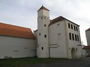 - західне крило — частково відбудоване, надбрамний будинок з низькою вежею (музейний зал) та будинок так званої "возовні";