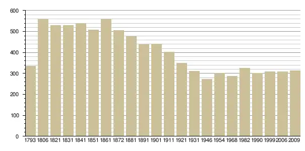 Динаміка населення (base Cassini de l'EHESS pour les nombres retenus jusque 1962[3], base Insee à partir de 1968 (population sans doubles comptes puis population municipale à partir de 2006)[4] · [5] ):