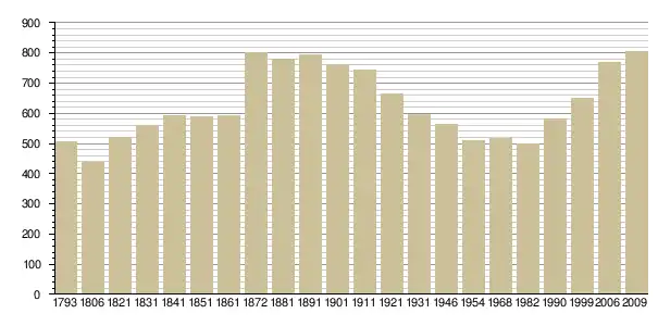 Динаміка населення (INSEE[4] і Cassini[5] ):