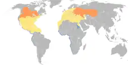 ![]() Ареал поширення чорного крячка місця гніздування шляхи міграції місця зимування | ||||||||||||||||||
