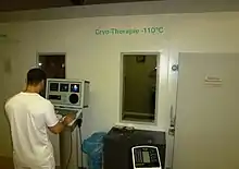 Кріотерапевтична камера — це корпус у формі труби з відкритим верхом, який закриває тіло людини та підтримує голову у кімнатній температурі.[1] Це специфічний тип низькотемпературного лікування, що використовується для зменшення болі та запалення.[2] Кріосауна була винайдена у 1970-і роки японським ревматологом Тосімою Ямагуті.[3][4]