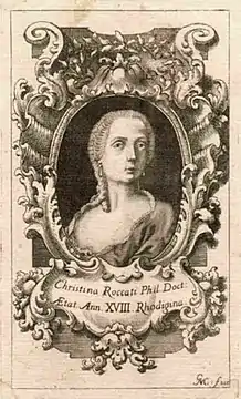 Крістіна Роккаті (24 жовтня 1732 року, Ровіго — 16 березня 1797, Ровіго) — італійська вчена та поетеса. Вона була на шляху до побудови успішної академічної кар'єри після закінчення Університету Болоньї (1751); на той час вона могла мати лише третю академічну кваліфікацію, яку коли-небудь могла мати жінка в італійському університеті[1]. Проте фінансові проблеми спонукали її повернутися до венеціанської провінції Ровіго, де вона десятиліттями продовжувала викладати фізику.