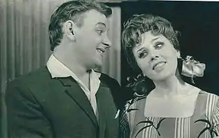 ![]() Юрій Крітенко та Світлана Мартинова у виставі «Я люблю, Архімед!» Дніпропетровськ, 1965 рік | |