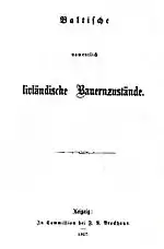 - Baltische, namentlich livländische Bauernzustände (Leipzig, 1862; zunächst anonym veröffentlicht)[1]