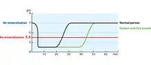 Нестимульована швидкість загального слиновиділення у нормальної людини становить 0,3–0,4 мл на хвилину,[6] показник нижче 0,1 мл/хв є значуще аномальним. Стимульоване слиновиділення менше 0,5 мл на залозу за 5 хвилин або менше 1 мл на залозу за 10 хвилин вважається зменшеним.