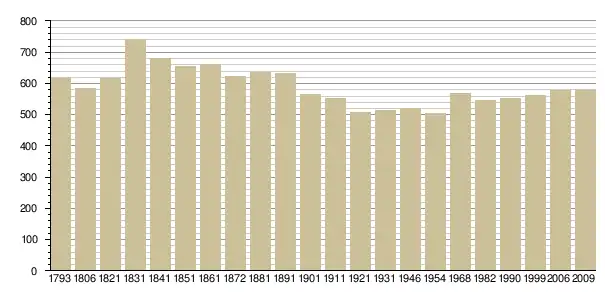 Динаміка населення (base Cassini de l'EHESS pour les nombres retenus jusque 1962[3], base Insee à partir de 1968 (population sans doubles comptes puis population municipale à partir de 2006)[4] · [5] ):