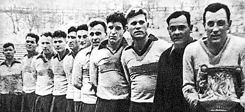 - «ДИНАМО», КИЇВ: Ідзковський, Махиня, Клименко, Кузьменко І., Ліфшиць, Правовєров, Гончаренко, Шиловський, Лайко /к/, Комаров, Афанасьєв. Тренер Фомін Вол.