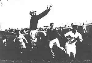 | … Долгое время игра шла без определенного перевеса на чью-либо сторону. К концу первого тайма инициативу взяли в свои руки харьковчане. Только хорошая игра защиты киевлян спасала ворота «Динамо» от гола. Во втором тайме харьковчане продолжали атаки. Одна из комбинаций закончилась голом, забитым харьковчанином Гороховым. До конца игры результат не изменился … | ||