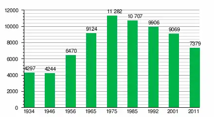 За даними перепису населення 2011 року у місті проживали 7379 осіб.