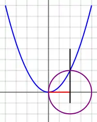 Ліва частина — це значення на параболі. Рівняння кола, збігається з правою частиною рівняння та дає значення на колі.