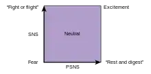 Левгейм також запропонував розглядати симпатичну і парасимпатичну частини вегетативної нервової системи як ортогональні осі замість того, щоб розглядати їх як антагоністів. Симпатичну вісь пропонуєтся вважати такою, що представляє збудження, а парасимпатичну вісь — як таку, що представляє секрецію і можливу позитивну у порівнянні з негативною валентності.[6] Ця модель відповідає, в деякому сенсі, кубічній моделі емоцій (симпатична вісь, схожа на норадренергичну вісь, а парасимпатична вісь — на серотонинергичну вісь у ЦНС).