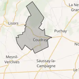 - Розташування муніципалітету Кудре на мапі Франції та сусідні муніципалітети