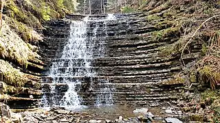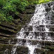 Водоспад дуже мальовничий і унікальний тим, що вода в ньому спадає численними невисокими каскадами, які нагадують сходи.