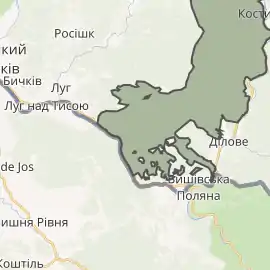 Розташований у межах лісового пояса на південно-східних відногах Свидівецького масиву (за геологічними особливостями належить до Мармароського кристалiчного масиву). Обмежений річкою Тисою (зі сходу і півдня) та долиною річки Косівської (із заходу). Найвищі вершини — Лисина (1409 м), Менчул (1242 м), Кимпа, або Темпа (1089 м), Полонська (1087 м). У південній частині масиву розташована смуга юрських мармуроподібних вапняків, що утворюють численні скелі, серед яких виділяється скеля Соколине Бердо.