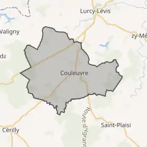 - Розташування муніципалітету Кулевр на мапі Франції та сусідні муніципалітети