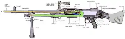 Кулемет складається, як правило, з таких основних частин і механізмів: ствола, ствольної коробки (коробу), затвора, ударно-спускового механізму, поворотної пружини (поворотного механізму), прицілу, магазину (приймача). Ручні та єдині кулемети зазвичай постачаються прикладами для кращої стійкості при стрільбі.