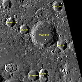- Утворення сателітних кратерів Кулон C і P відбулось у нектарському періоді[1].