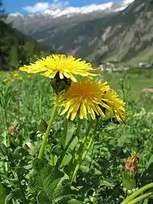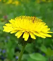 Жовта головка кульбаби — не окрема квітка, а цілий «кошик» з квітами: кожна квітка має вигляд трубочки з п'ятьма зрощеними пелюстками, з прирослими до них п'ятьма тичинками, бічні квітки мають пелюстки, які виросли в довгі язички[5].