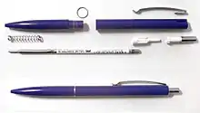 ![]() Кулькова ручка німецької фірми «Schneider» [1] у розкладеному і складеному вигляді | |