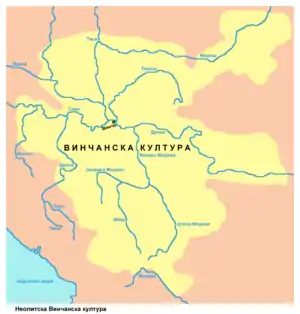 Окрім території сучасної Сербії культура Вінча була поширена в Угорщині (Осентіван), Румунії (Турдаш) і Болгарії (Градешниця). Іноді до Вінча зараховують грецькі знахідки Діміні. Носії культури Вінча займались хліборобством та тваринництвом.