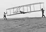 У 1903 брати Райт здійснили перший політ на літальному апараті, важчому за повітря (аероплані), сталося це в Кітті-Хок (Північна Кароліна, США).[1] У тому ж році калузький вчитель Костянтин Ціолковський публікує перші роботи, де розглядає практичні аспекти аеронавтики. У 1909 Луї Блеріо перелітає (за 36 хвилин) Ла-Манш, в 1927 Чарльз Ліндберг здійснює перший безпосадочний переліт через Атлантику. Перший світовий рекорд швидкості з екіпажем (три чоловіки) — 111 км за годину встановлює 29 грудня 1911 р. Ігор Сікорський поблизу Києва. У 1939 І. Сікорський винаходить гелікоптер.