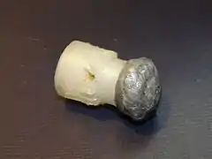 - Хвостовик, або пиж-стабілізатор, виготовлений з пластмаси (зазвичай поліетилену високого тиску), в передній циліндричній частині якого є глухий отвір під центральний стрижень кулі. При пострілі свинцева головна частина під впливом перевантаження щільно втискається в хвостовик, так що не відокремлюється від нього навіть при влученні в ціль. На стабілізаторі сконструйовані похилі ребра, які, за задумом конструкторів, повинні надавати кулі обертання в польоті (в останніх варіантах кулі ребер зазвичай 6[1]). Хвостовик також відіграє роль обтюратора.