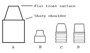 Конструкція кулі з пласким носиком має приблизно конусоподібну форму з усіченим пласким носиком (він має назву фр. meplat) на циліндрі (позиція A на рисунку 1). Основа конусу має менший діаметр ніж весь циліндр, таким чином утворюється гостре плече. Плосконоса куля робить чисті отвори у мішені, на відміну від круглоносої кулі яка розтягує/розриває папір, гостре плече акуратно розширює отвір, що допомагає легко підрахувати кількість очок. Конструкція SWC забезпечує кращу зовнішню балістику ніж куля з пласкою головною частиною, оскільки конічний нос кулі створює менший опір ніж плаский циліндр. Типова модифікація полягає в зміні конічного перетину, щоб зробити боки увігнутими, для зменшення маси кулі, або опуклими, для її збільшення. На рисунку 1 в позиції B можна побачити кулю SWC з увігнутими боками, наприклад, кулі .45 ACP які використовують для кульової стрільби. Увігнуті боки зменшують вагу кулі, що впливає на відбій, при цьому загальна довжина кулі є достатньою для використання набоїв у магазинах самозарядних пістолетів, наприклад, M1911, які зазвичай використовують у змаганнях з кульової стрільби.[2][3]