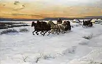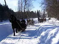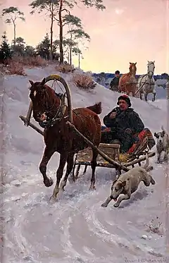 Британський історик Норман Дейвіс у своїй книзі “Історія Польщі” писав: «Узимку kulig, або санні виїзди, становили чудовий спосіб товариських забав. Низка запряжених кіньми саней, де сиділо повно людей у хутрах і чудових убраннях, вирушала по снігу в подорож по околицях. Очолювали поїзд молоді парубки, з передніх саней долинала музика, в морозному повітрі дзвеніли дзвіночки, поїзд рухався від двору до двору. В кожному домі пили за здоров’я господаря й запрошували дівчат приєднатися. В якомусь домі зупинялися надовго і влаштовували імпровізований бал або бенкет. Уночі, тримаючи вгорі над головою смолоскипи, щоб освітити собі шлях, товариство розходилося по домівках.»[1].