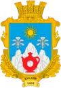 В лазуровому щиті три срібних гори, середня вища, обтяжених червоним куманцем; над середньою горою золоте сонце без обличчя з шістнадцятьма променями, з двох бічних гір б'ють срібні фонтани. Щит вписаний в золотий картуш і увінчаний золотою сільською короною. Внизу щита напис "Куманів" і рік "1404".