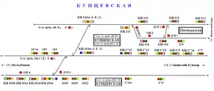 Управління стрілочними переводами та світлофорами напівавтоматичної дії здійснюється з посту централізації станції «Кунцевська» Філівської лінії.