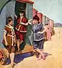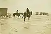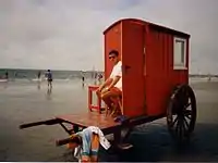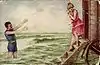 Чоловік і жінка, яка виходить з купальної машини, початк 20-го століття.