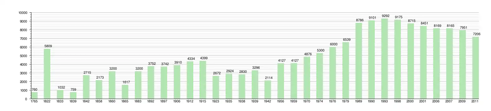 | 1765 | 1822 | 1833[2] | 1839 | 1842 | 1858 | 1860 | 1865[3] | 1883 |