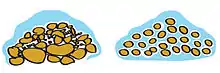 Вміст золота в початковій руді 0.5 — 10 г/т. Купа повинна бути відносно невеликої місткості — близько 10000 т руди. Основа купи повинна бути заасфальтована або покрита полімерною плівкою.