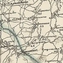 - рос. [село] Курашъ, 25 дворів, з церквою.