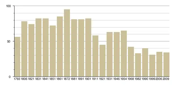 - Courbes sur le site de l'Insee, наведено за французькою вікіпедією