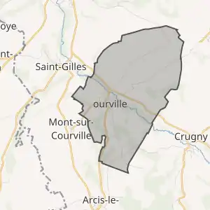- Розташування муніципалітету Курвіль на мапі Франції та сусідні муніципалітети