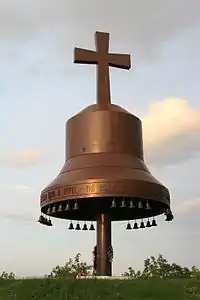 Ліворуч меморіалу є ще один дзвін, встановлений при освяченні місця.