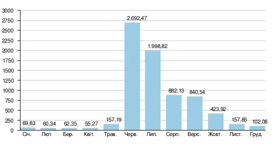 Нижче наводиться діаграма середньомісячної витрати води за 40 років спостережень (з 1936 по 1992 роки) з контрольно-вимірювальної станції у селищі Світлогорськ, за 98 км від гирла (70% водозбору).[4]