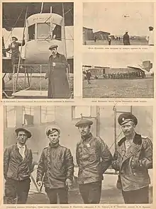 ![]() Літак «Ілля Муромець» після перельоту з Петербургу готується приземлитися на Куренівському аеродромі, 17 червня 1914 р. | |
