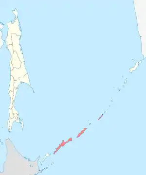 - Частина знаходиться на території, непідконтрольній Японії (див. Проблема Північних територій)